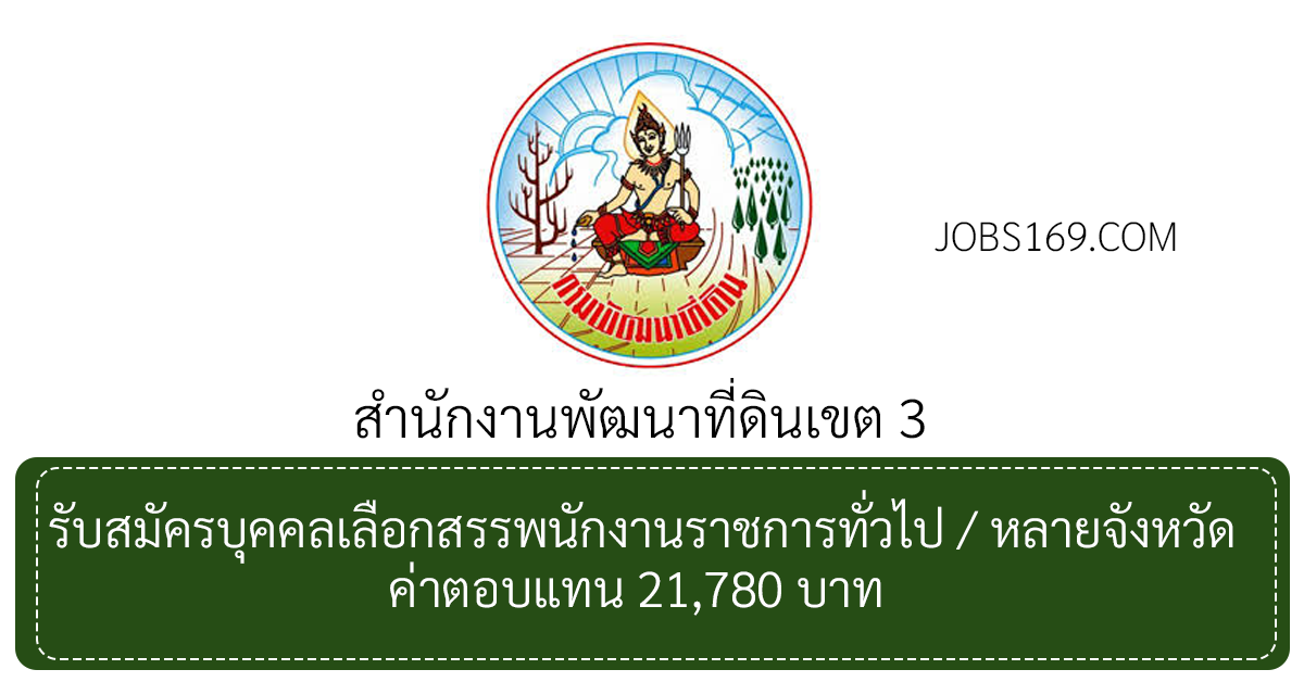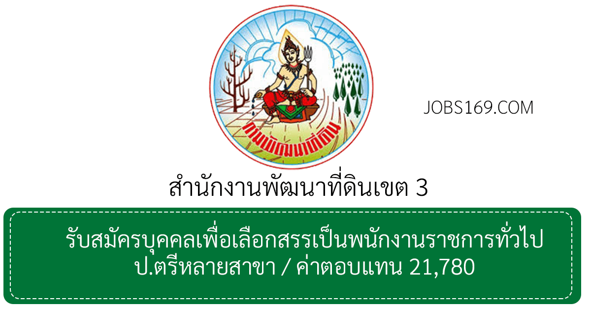 สำนักงานพัฒนาที่ดินเขต 3 รับสมัครบุคคลเพื่อเลือกสรรเป็นพนักงานราชการทั่วไป /ป.ตรีหลายสาขา/ค่าตอบแทน 21,780 /สมัครวันที่ 25 – 29 สิงหาคม 2568