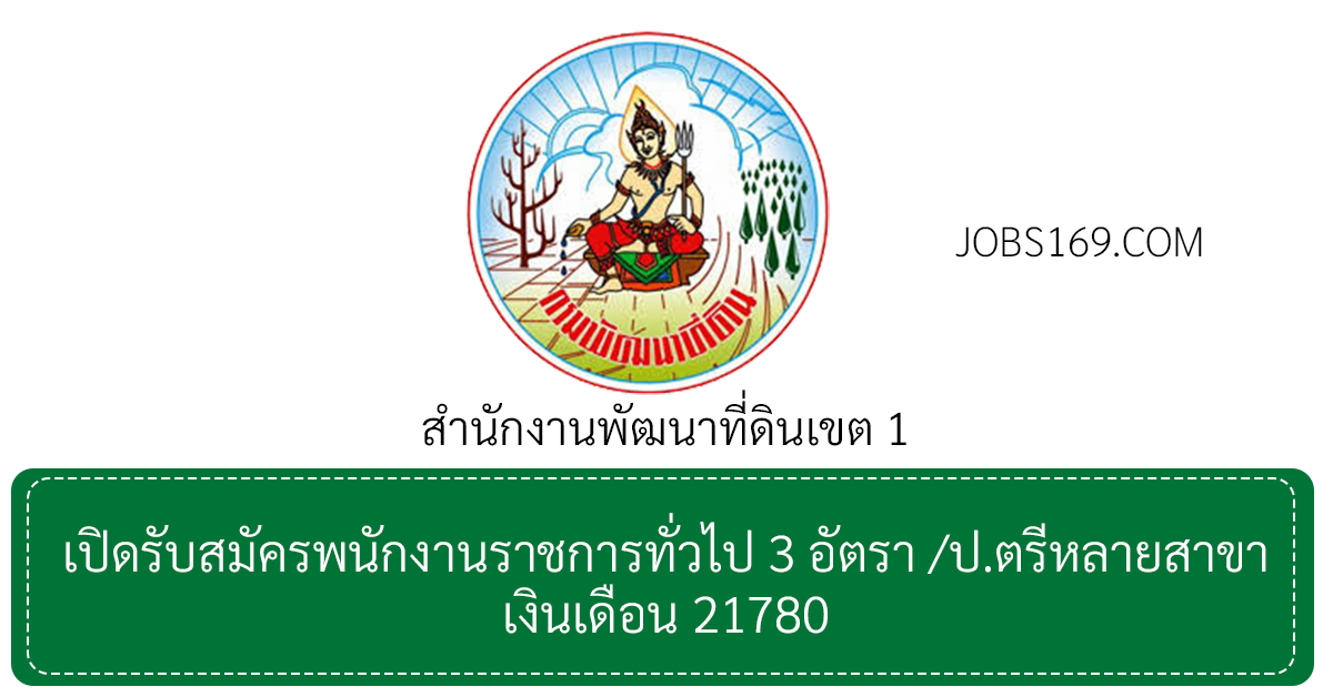 สำนักงานพัฒนาที่ดินเขต 1 เปิดรับสมัครพนักงานราชการทั่วไป ป.ตรีหลายสาขา / เงินเดือน 21780 รับสมัครทางอินเทอร์เน็ต 8 – 18 กันยายน 2568