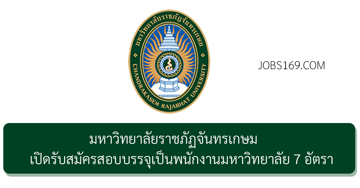 มหาวิทยาลัยราชภัฏจันทรเกษม เปิดรับสมัครสอบบรรจุเป็นพนักงานมหาวิทยาลัย 7 อัตรา ปริญญาตรีหลายสาขา รับสมัครทางอินเทอร์เน็ต – 25 มีนาคม 2569