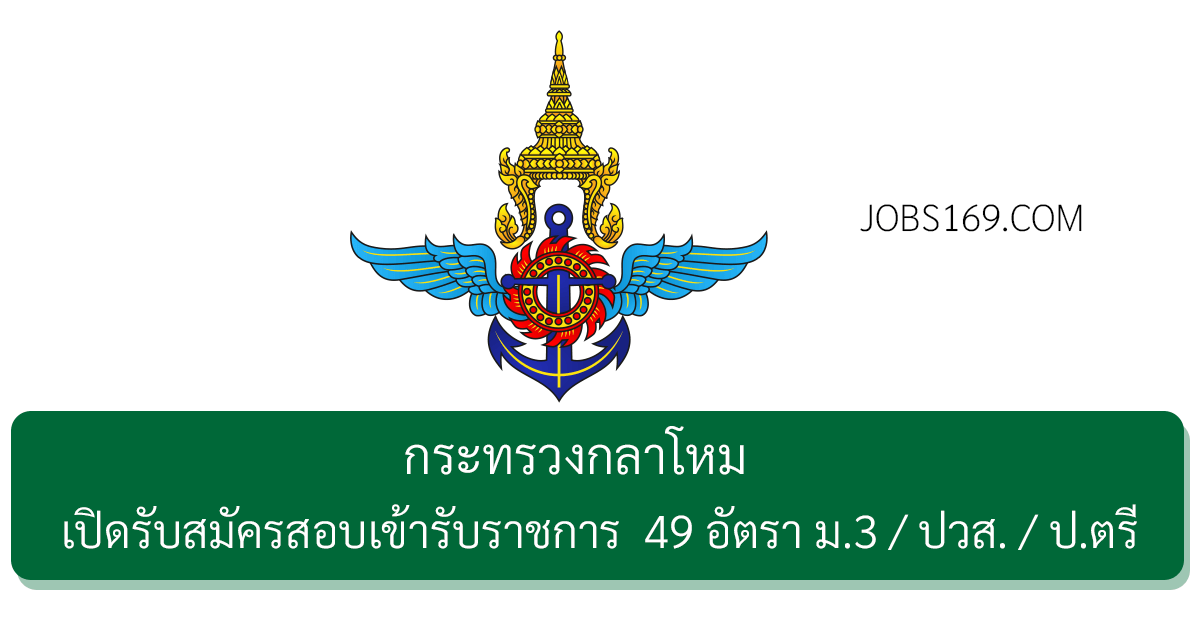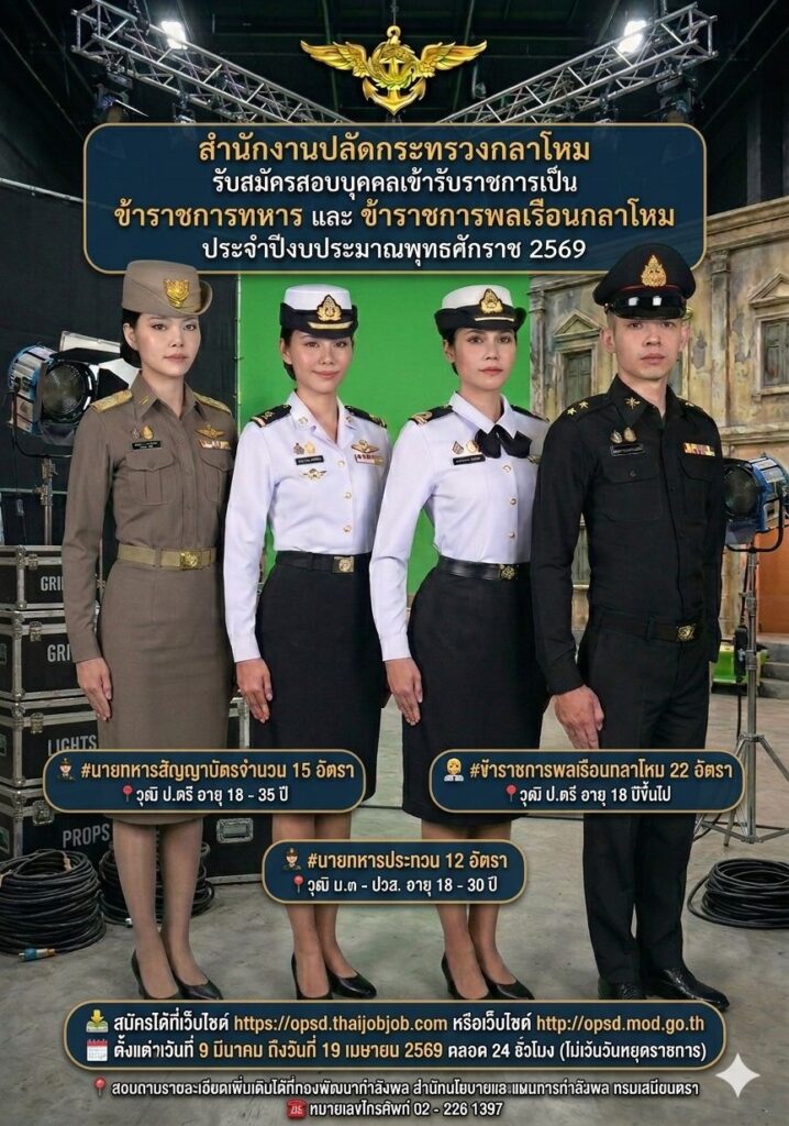 สำนักงานปลัดกระทรวงกลาโหม เปิดรับสมัครสอบเข้ารับราชการ 49 อัตรา ม.3 / ปวส. / ปริญญาตรี เปิดรับสมัคร 9 มีนาคม – 19 เมษายน 2569