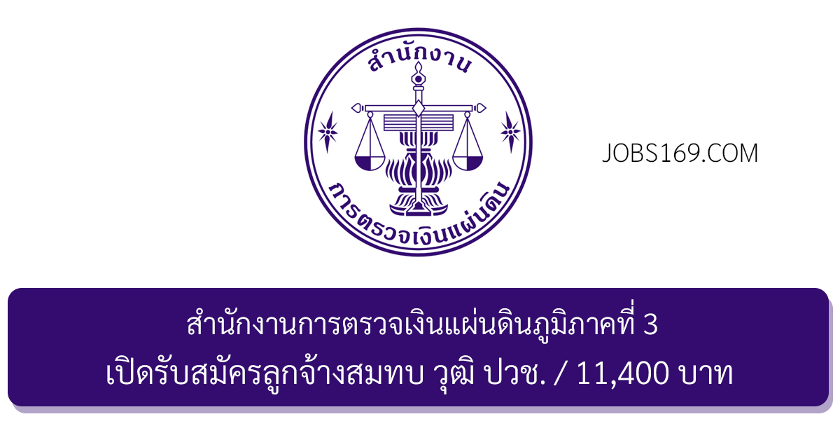 สำนักงานการตรวจเงินแผ่นดินภูมิภาคที่ 3 (จังหวัดนครปฐม) เปิดรับสมัครลูกจ้างสมทบ 1 อัตรา รับสมัครด้วยตนเอง ตั้งแต่วันที่ 24 มีนาคม – 30 เมษายน 2569